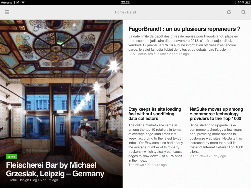 Le bon côté de Feedly, c’est qu’il est disponible sur plusieurs supports : iPad, iPhone, … et vous pouvez ainsi rentabiliser vos petits moments d’inactivité en jetant un coup d’œil rapide aux dernières news dans votre domaine.