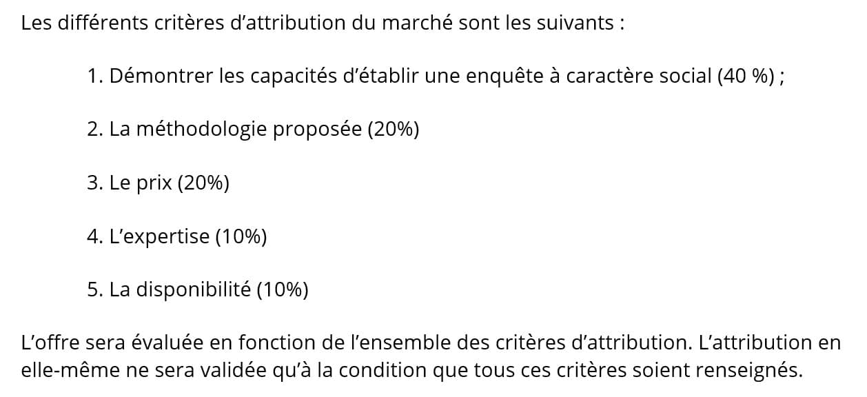 - Präzisieren Sie die Bewertungskriterien der Angebote: Geben Sie an, wie das beste Angebot ausgewählt wird, um weniger seriöse Marktforschungsagenturen auszuschließen