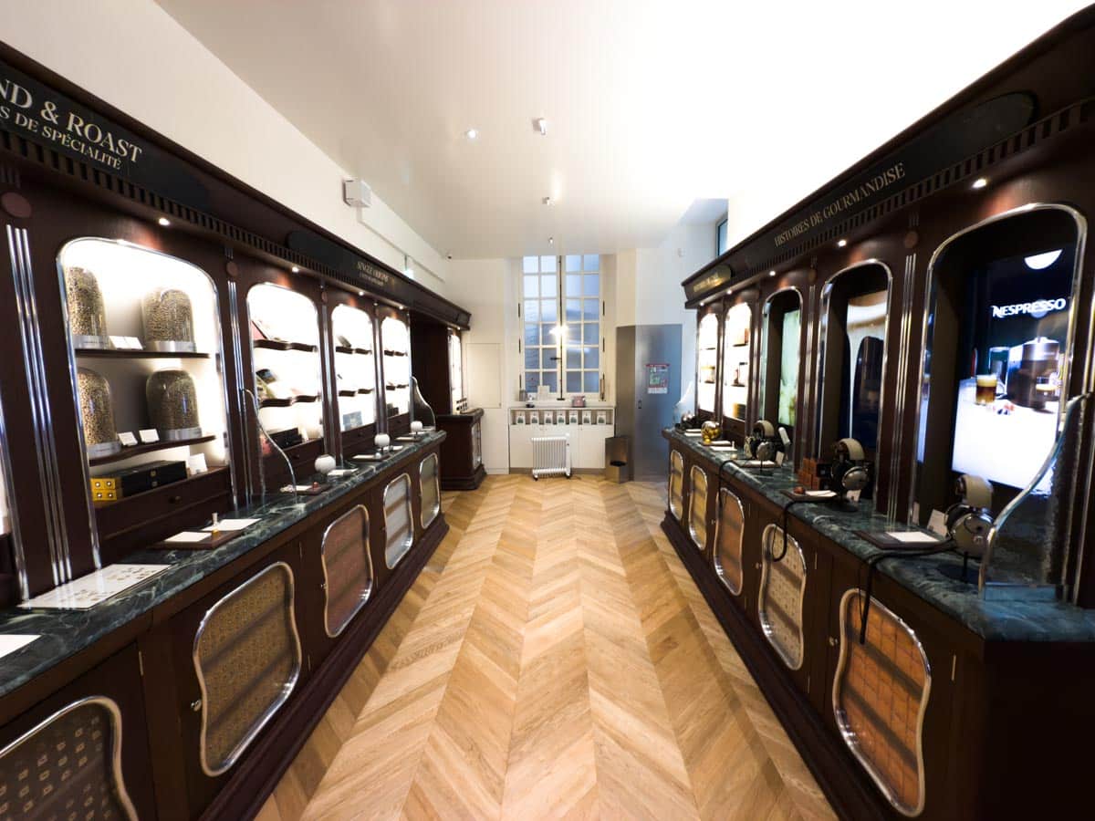 Die Eröffnung der Maison Nespresso im Marais-Viertel in Paris illustriert perfekt die strategische Evolution der Marke. In einem 17. Jahrhundert alten Hôtel particulier installiert, bietet dieser 200 m² große Concept Store, zugänglich für die Öffentlichkeit (davon nur 15 m² dem Kaffee gewidmet), Arbeit für 23 Mitarbeiter, um eine vollständige immersive Erfahrung anzubieten.