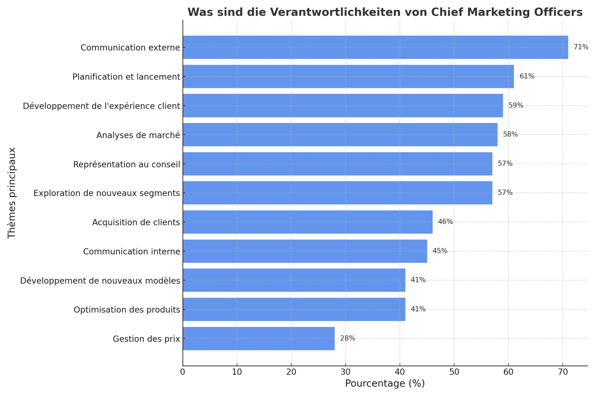 Das Umfrageteam hatte eine gute Idee, als es die 835 Chief Marketing Officer nach ihren Verantwortlichkeiten befragte. Die vier wichtigsten Verantwortlichkeiten (siehe Grafik unten) können auch wie folgt interpretiert werden