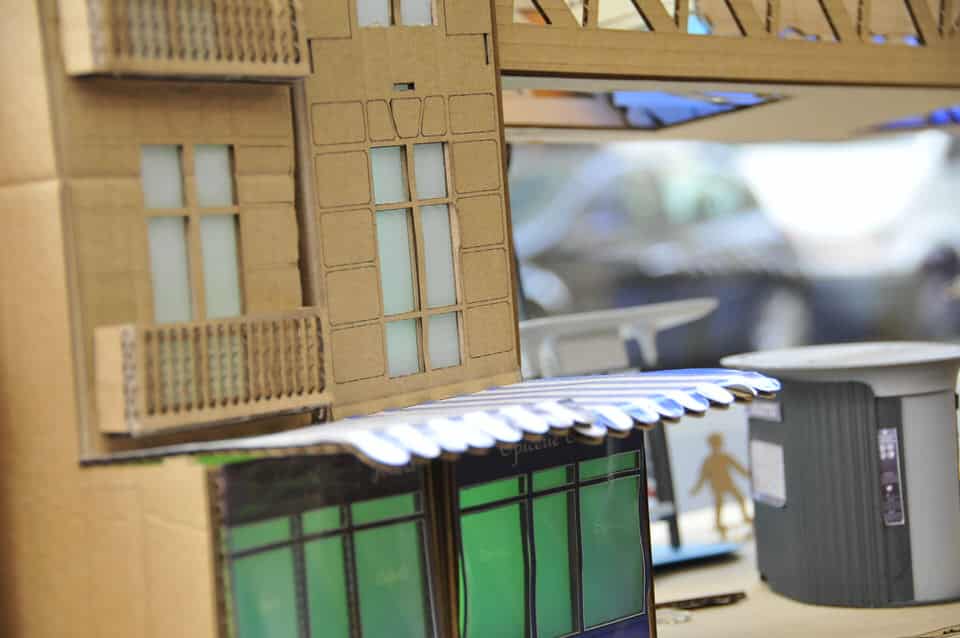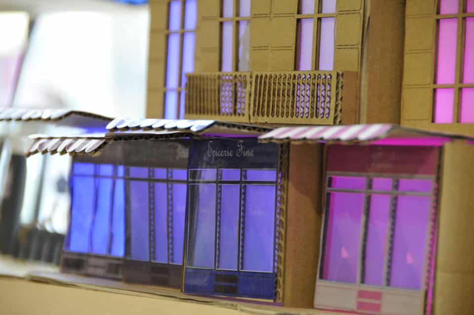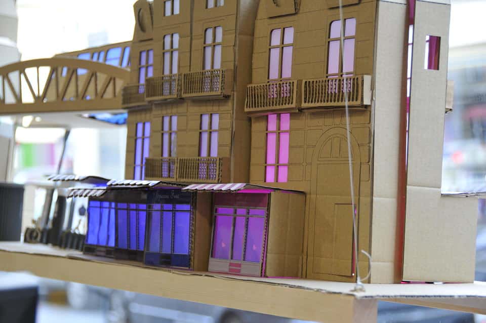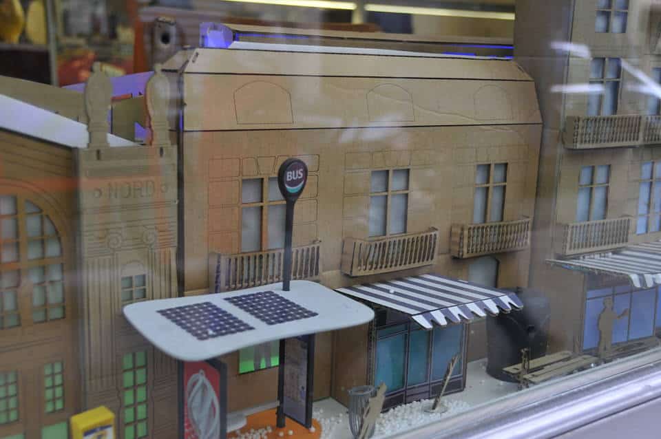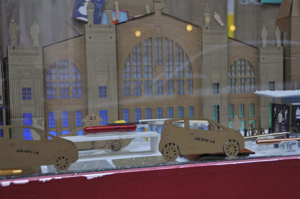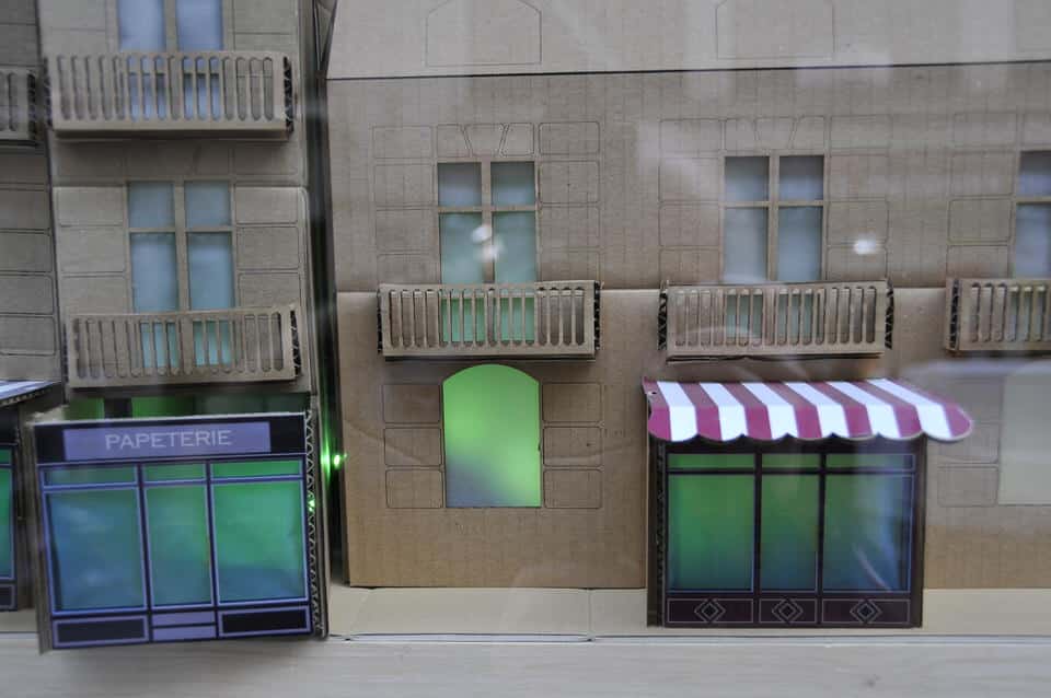 Chez Jamini (le nom de la boutique), les cartons des commerçants du quartier ont été recyclés pour créer un décor de Noël un peu enfantin certes, mais tellement vrai. Quelques découpes laser et microcontrôleurs plus tard, ce décor s’anime pour le plus grand plaisir des passants qui, d’un geste de la main, deviennent des acteurs de ce petit miracle d’ingénierie. Les lumières s’allument, une éolienne se met à tourner et un Père Noël surgit soudain des toits haussmanniens.
