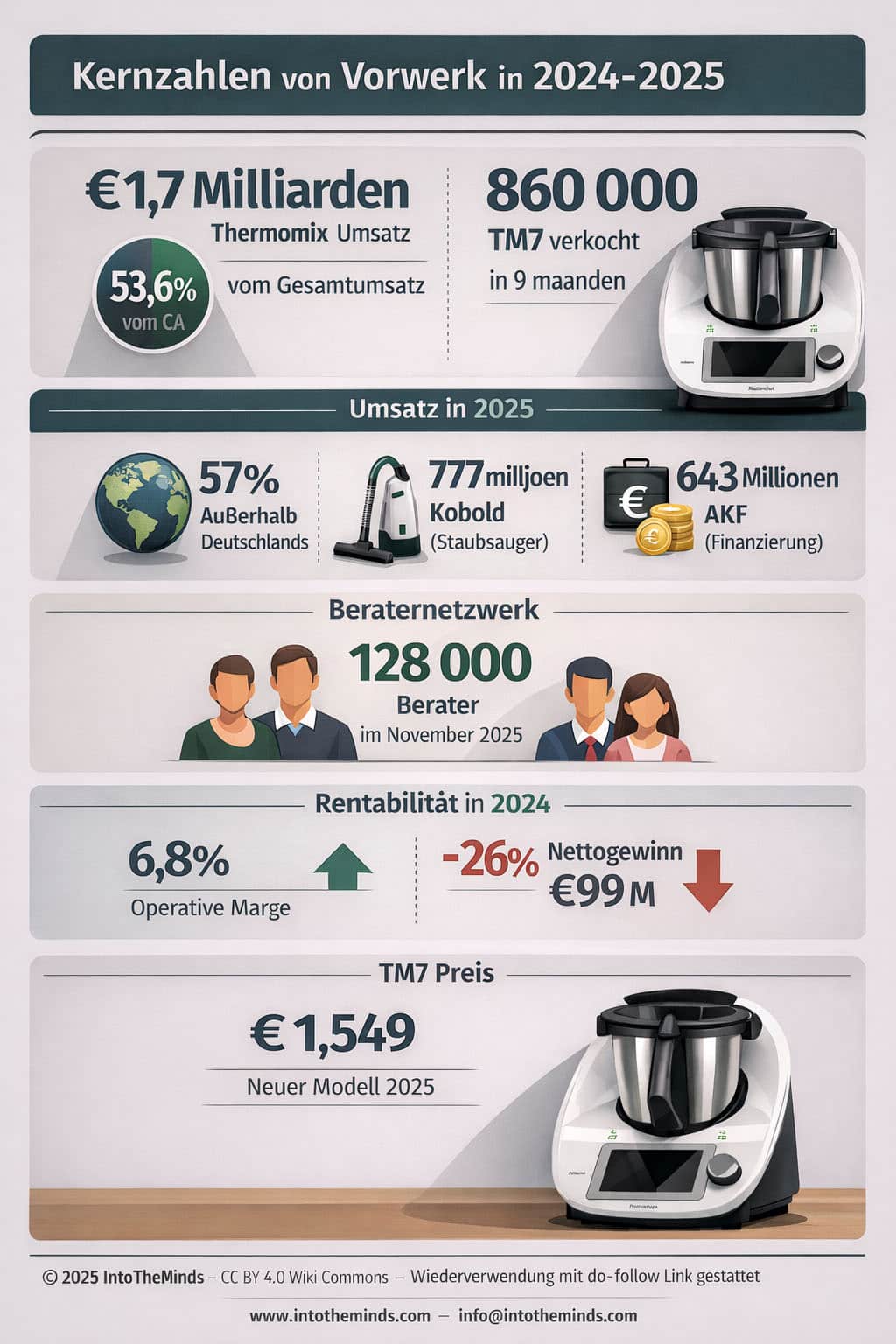 • Der Thermomix macht mittlerweile mehr als 50% des weltweiten Umsatzes von Vorwerk aus (1,7 Milliarden Euro von 3,17 Milliarden im Jahr 2024)