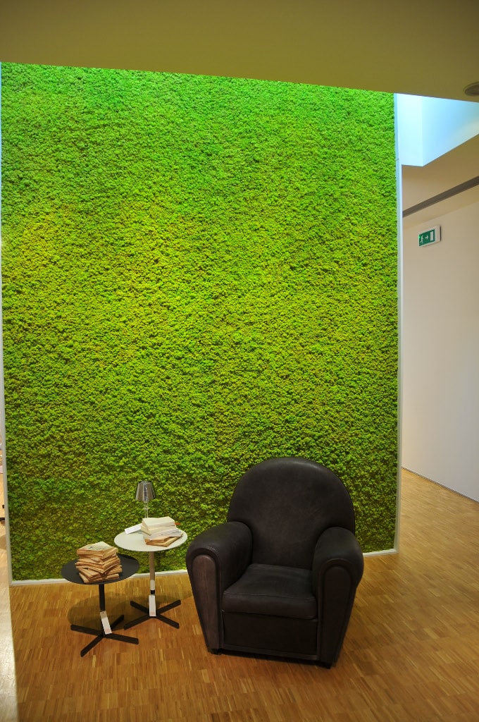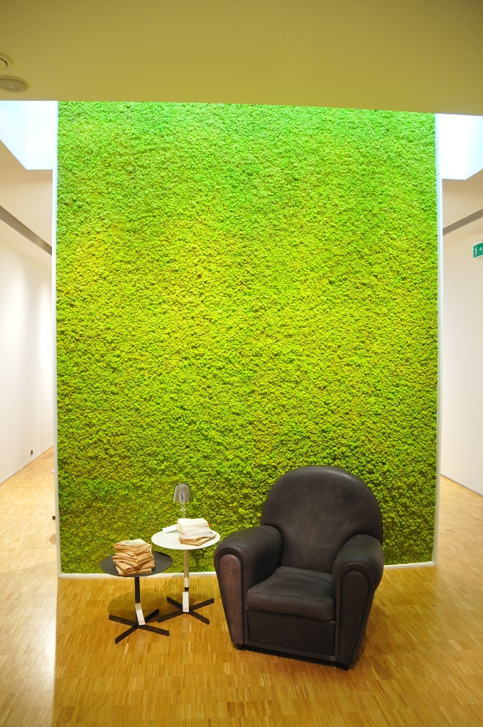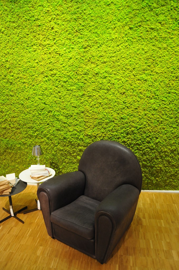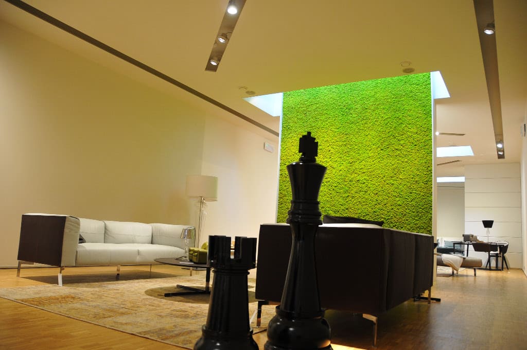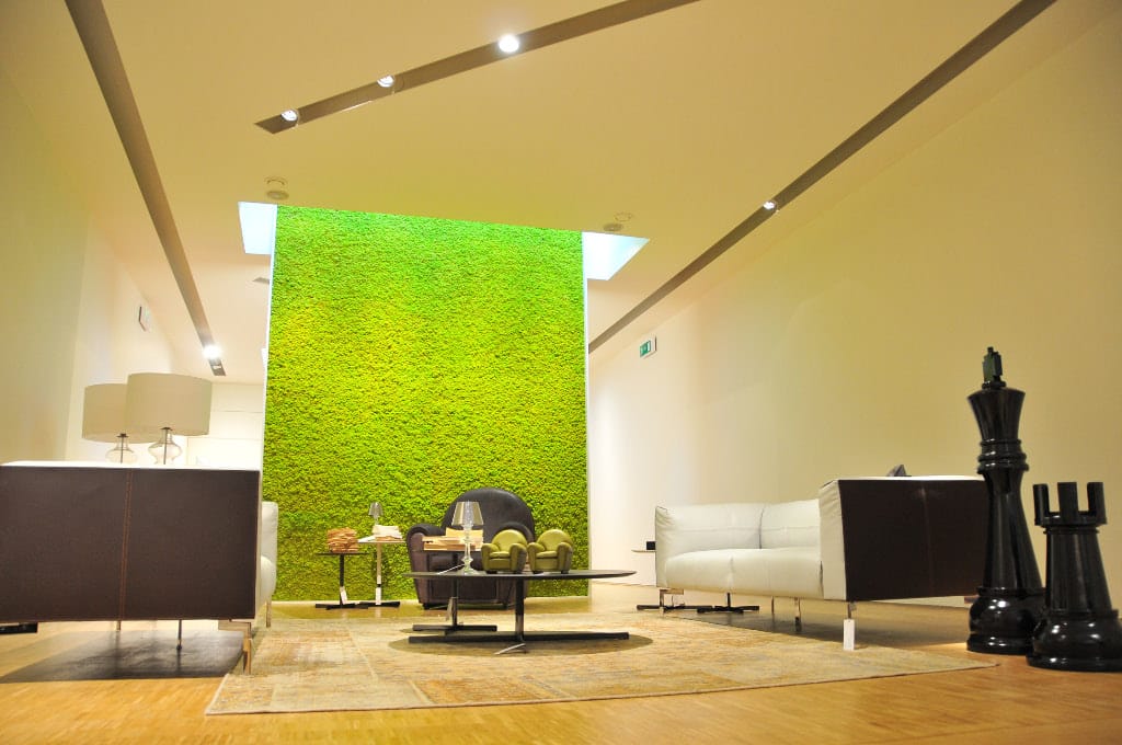 Nous sommes tombés sur un autre exemple à Bruxelles, dans l’ancien showroom Dominique Rigo récemment reconverti en point de vente Poltrona Frau (qui s’est d’ailleurs associé avec Baccarat pour l’occasion). Le point de vente a repris les codes architecturaux des autres magasins Poltrona Frau et incluse donc un mur végétal, bien planté au milieu du point de vente.