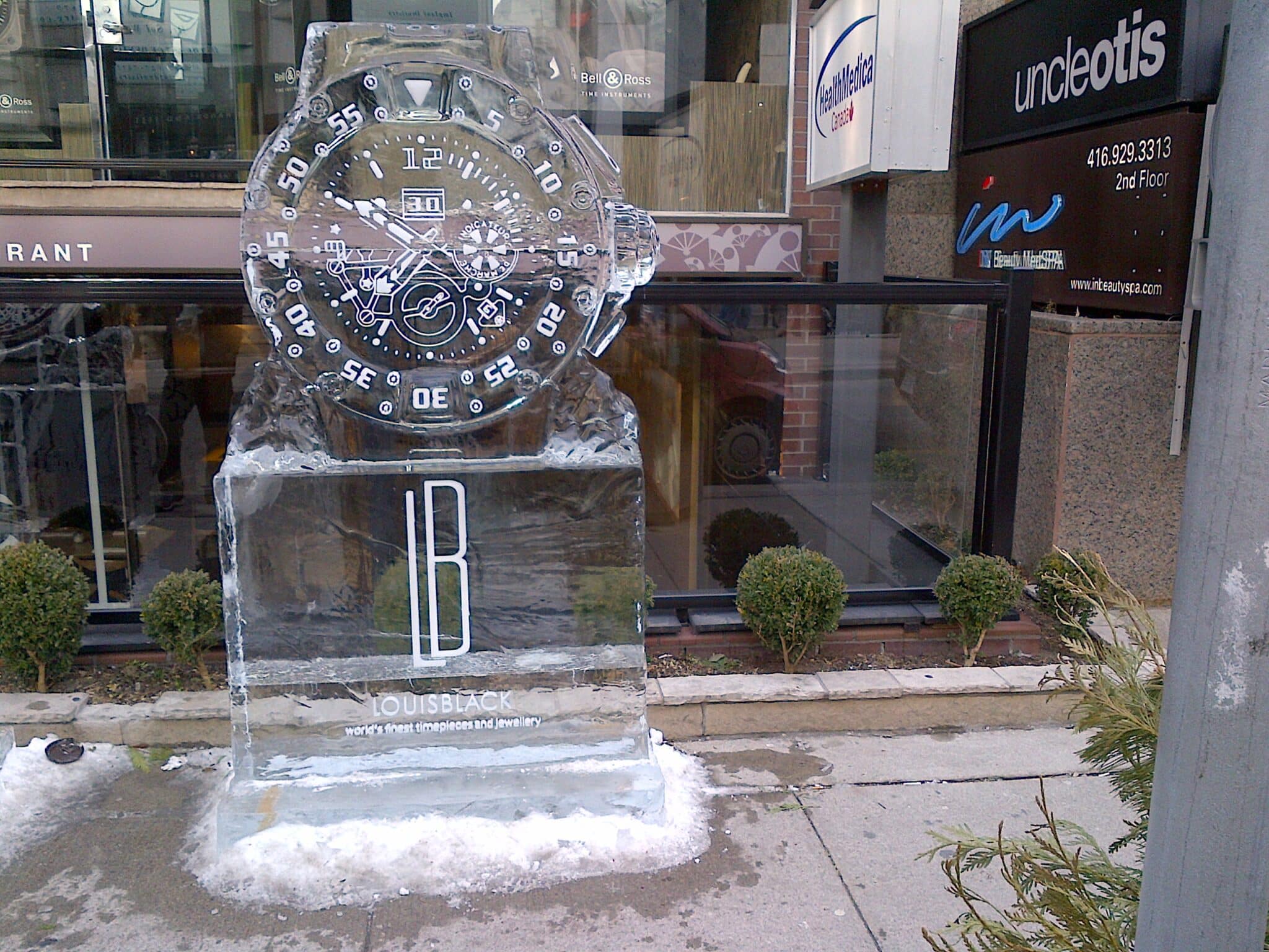 An ice sculpture presented at Yorkville Ice Sculpture fair by watch dealer Louis Black