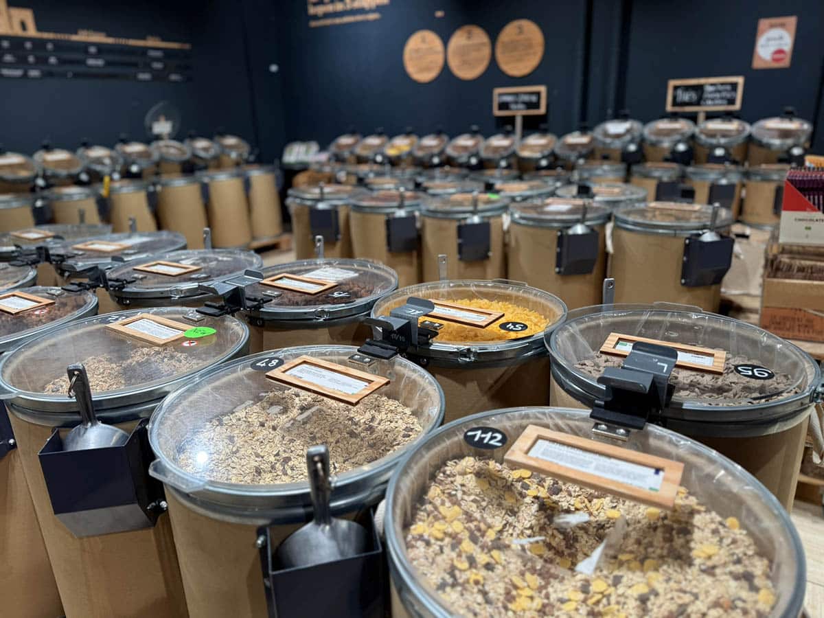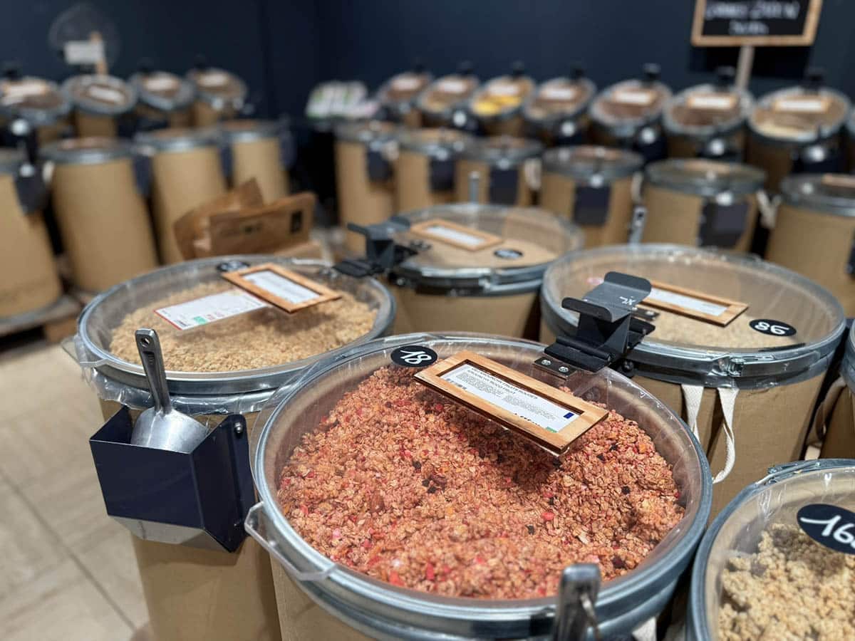 Some stores offer only bulk products. These can then be sold in large containers, as illustrated in this photo.