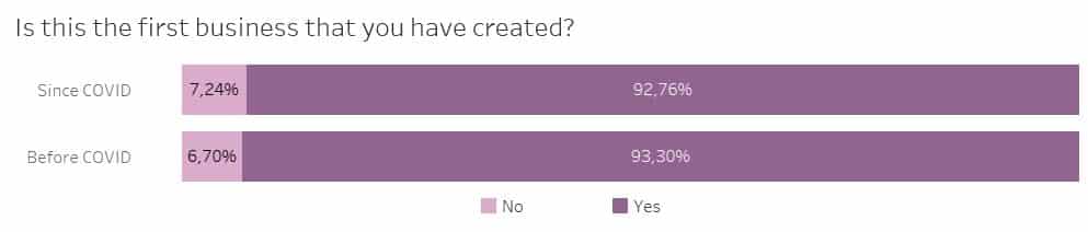 - The profile of entrepreneurs who started since March 2020 is less experienced. There has been a 5-point increase in the share of entrepreneurs with less than one year of work experience and an equivalent decrease in those with more than 20.