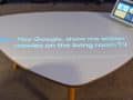 The room reserved for Nest is particularly successful. A whole scenario has been scaffolded that allows you to use the various features offered by the connected home system. After entering a living room and sitting on the couch, a scenario unfolds before you. Google commands are projected on the coffee table to either speak or let a voice-over do it. At the beginning of the scenario, a shadow appears in the window. It is a delivery man ringing the doorbell. Using a voice command, you can request the camera on the doorstep to display the image. Further on in the scenario, a noise is heard on the floor. You control the corresponding camera and realize that it is the dog that is acting up.