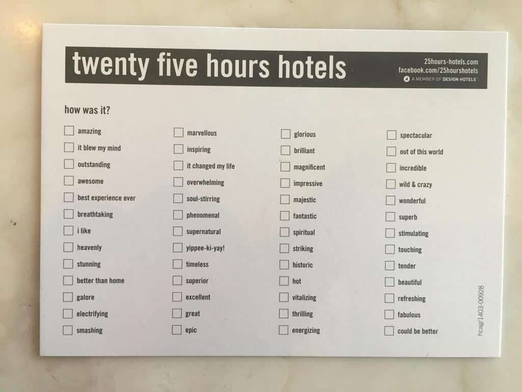 In the hospitality sectors the norm is usually to have satisfaction surveys distributed to customers. 25 Hours hotels chose a different way.