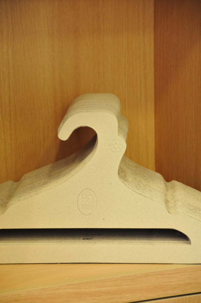 H2O brings a total new concept where the reception area is fitted with a fountain and shelves where bags are stored and wait on their owners. This pretty much looks like a shirt maker shop. Everything was studied so much in detail that the brown bags fit perfectly in the shelves and adds to this feeling of cleanness. Special coat-hangers made out of cardboard were also foreseen to provide a customer experience that is aligned on all touchpoints.
