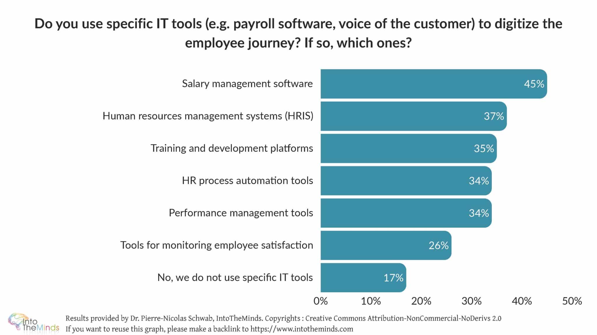 We also note that 17% of companies declare not using any IT tools at all for their HR processes, illustrating a real digital divide.