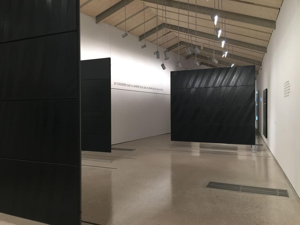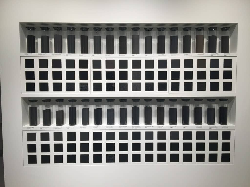 - a wall with the different shades of black used by Soulage and the materials used to produce each black tone. Once you have seen this palette of blacks, you better understand that there is no such thing as “a” black