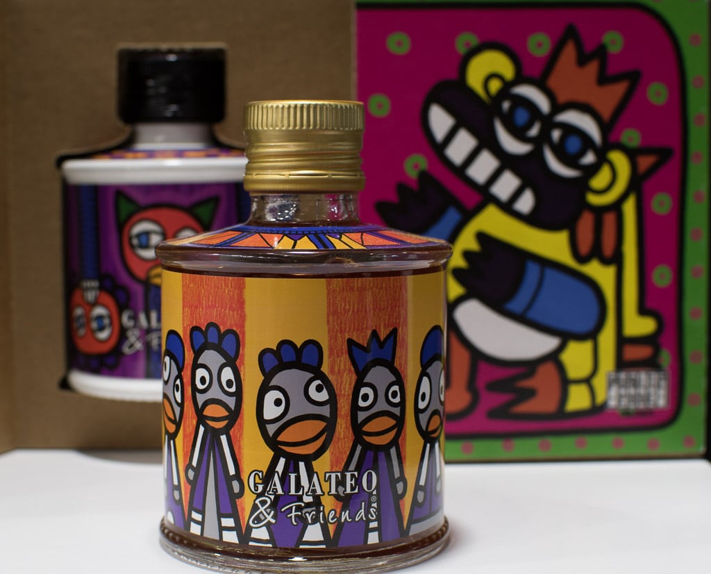 Galateo & Friends proposes a line of olive oils recognizable by their upmarket bottles. Their “Les signatures” line reflects the marketing approach of Château Mouton-Rothschild: each year, the bottle is signed by a different artist or is the fruit of a different collaboration. It’s a permanent co-branding operation that forms part of the brand’s marketing mix. The bottles signed by designer Carlo Volpi, for example, come in 4 different versions sold in a box.