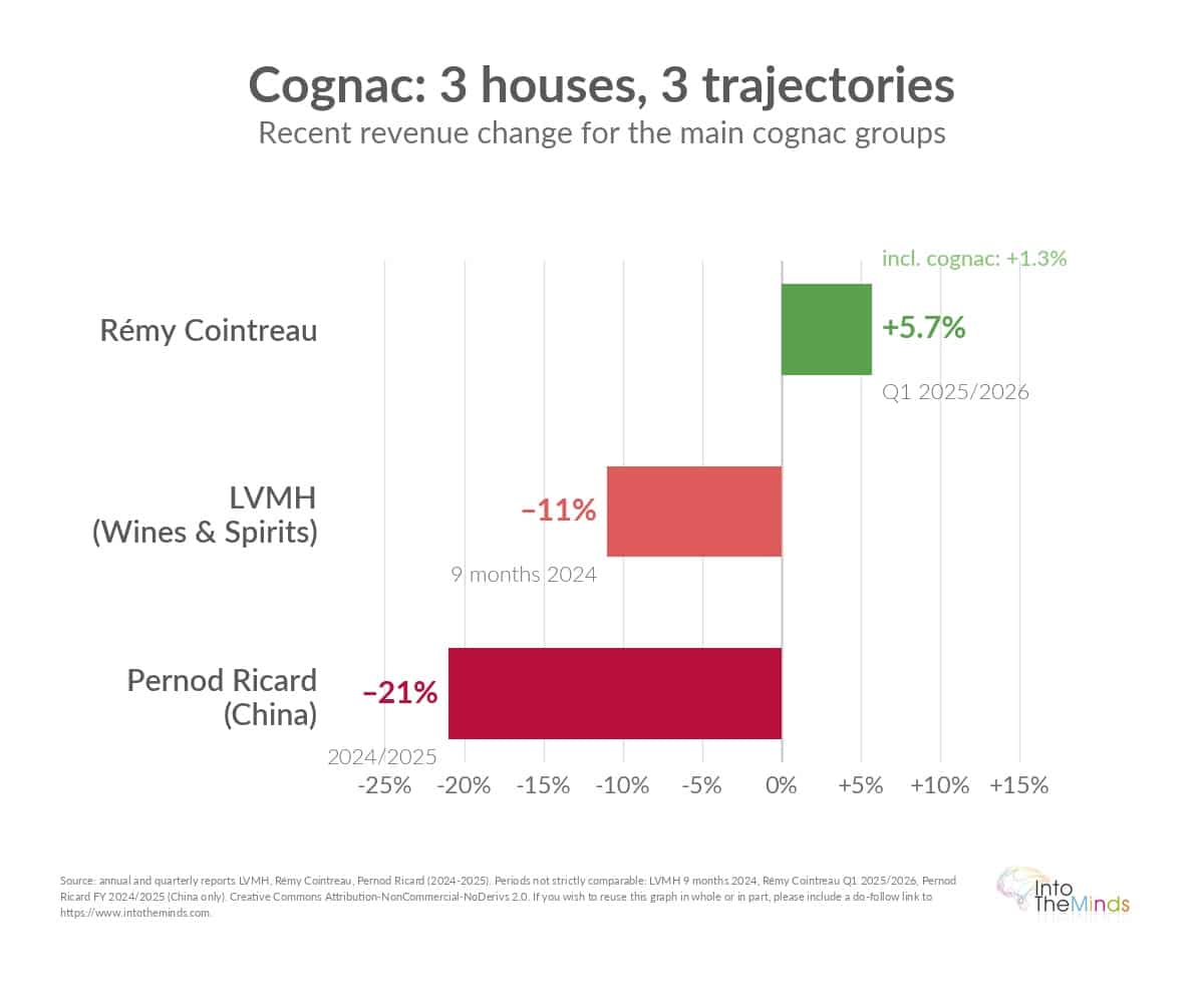 - Major houses (LVMH, Rémy Cointreau, Pernod Ricard) are adapting their strategies with mixed results depending on the market