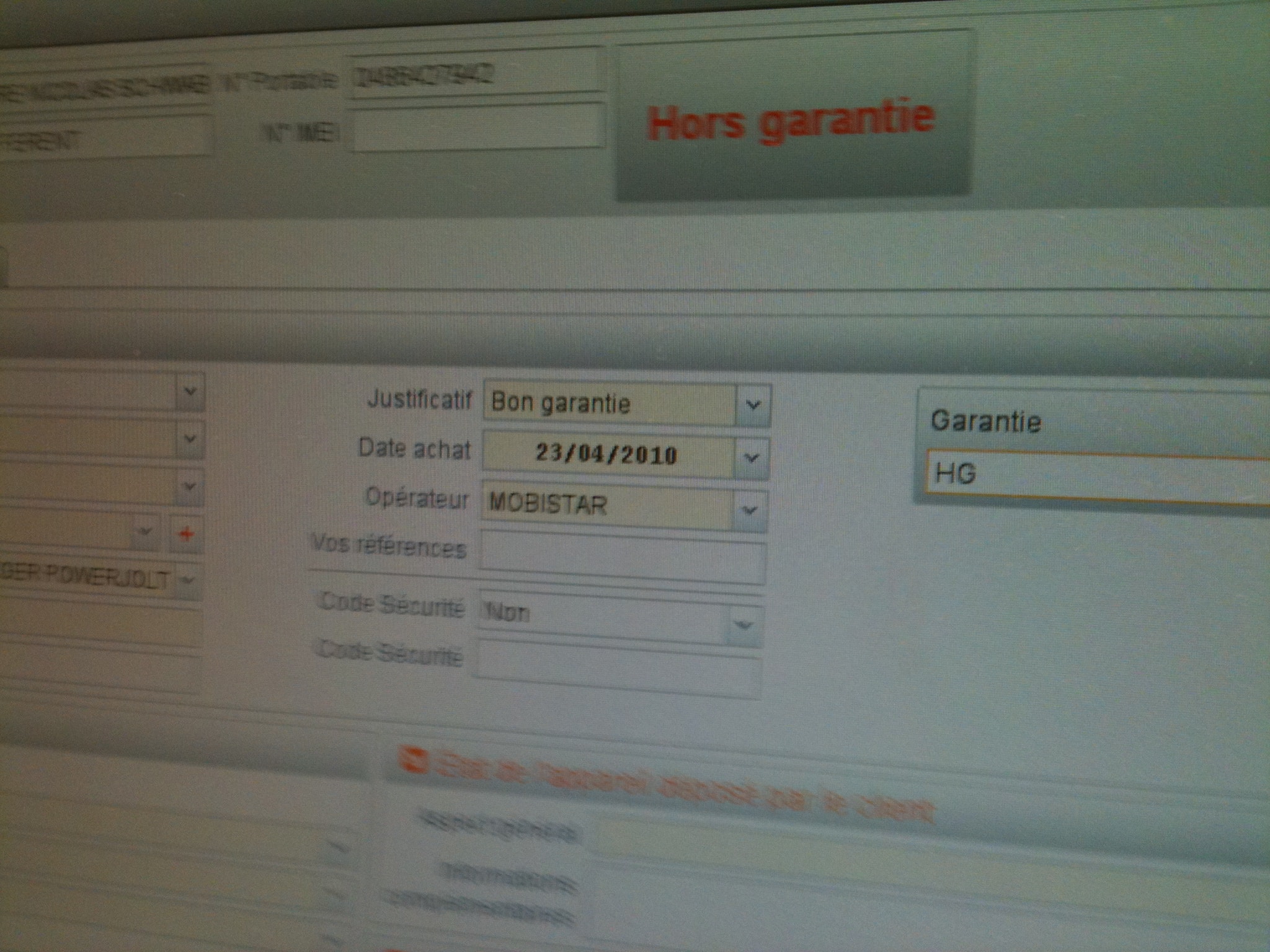 Last but not least I took a picture which says a lot. While an employee of Mobistar was desperately trying to send my accessory to the repair centre (after he was forced to by the Ombudsman), he authorized me to take a picture of the screen of his computer. Believe it or not, the interface is made to have the repair under warranty denied if the purchase date is older than 6 months. And there is no way to change it as all fruitless attempts by the Mobistar employee revealed.