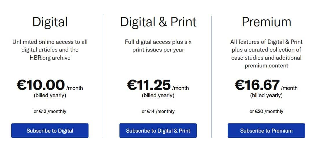 The nudge is even more apparent in the example below. The price difference with the middle option has completely disappeared. The consumer has the impression that the paper magazine is offered to him.