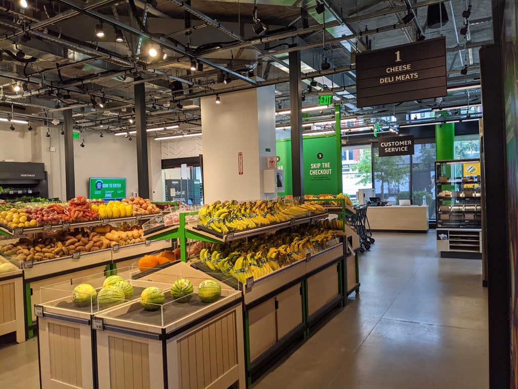 La belleza de esta tecnología es que funciona incluso con productos que se venden por peso, como por ejemplo en la sección de frutas. La tienda Amazon Fresh en Washington, D.C., tiene una sección de frutas y verduras mucho más grande que sus homólogas.