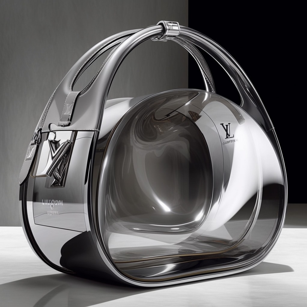 Un bolso Louis Vuitton diseñado por Anish Kapoor podría incorporar su estética minimalista con formas de escultura atrevidas y materiales inesperados, como superficies reflectivas o telas con textura. El bolso también podría explorar los temas de los reflejos y la percepción con compartimentos ocultos o ilusiones ópticas sutiles.