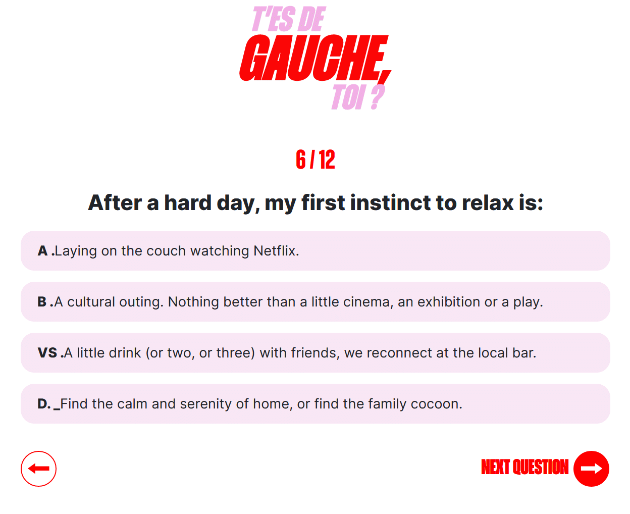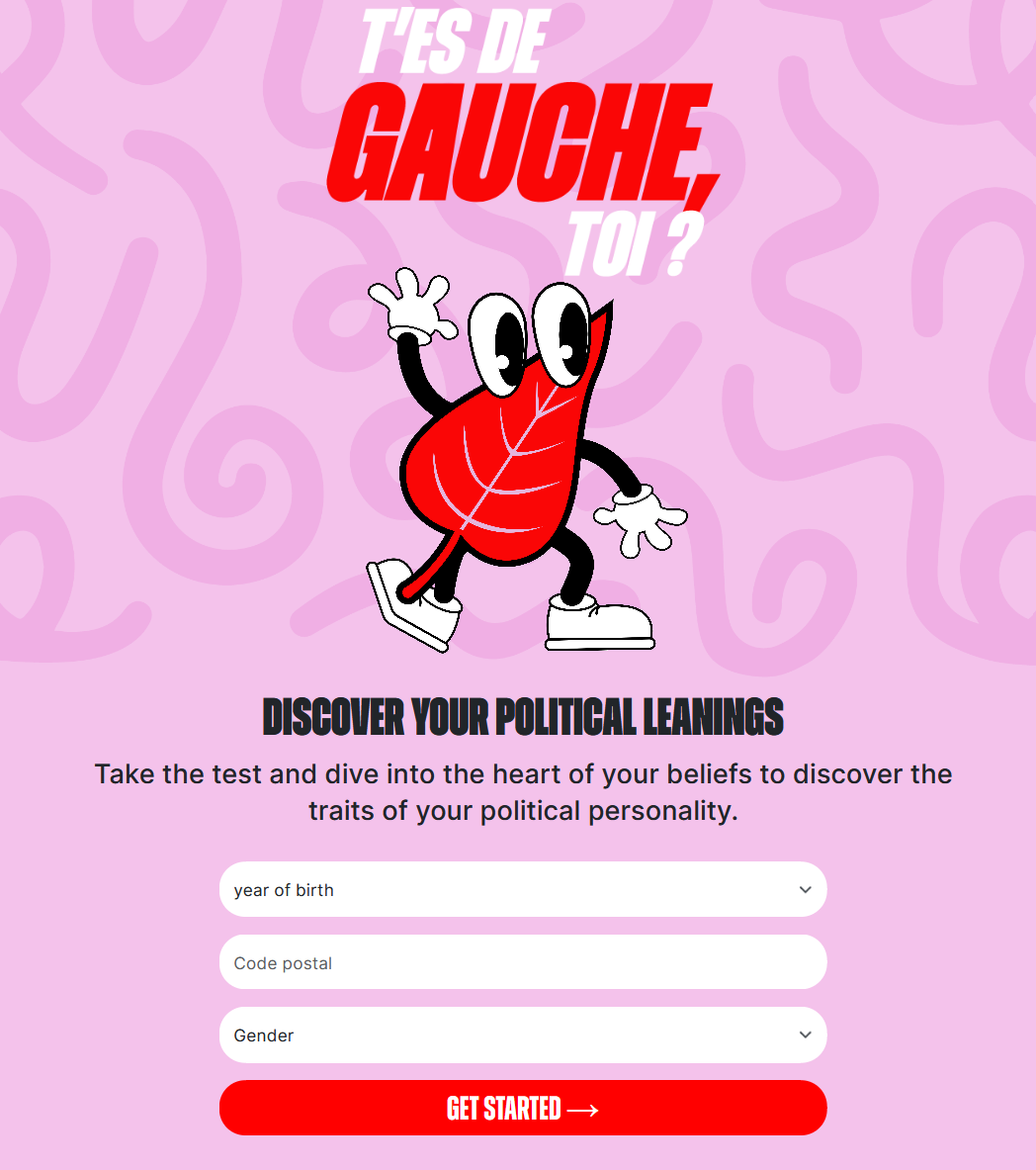 La página principal de la encuesta propone descubrir tu «tendencia política». En esta fase, resulta razonable asumir que se trata de una encuesta seria que te permitirá aprender algo sobre ti mismo. La intención es loable, puesto que el espectro político se ha vuelto considerablemente más complejo en los últimos años con la emergencia de partidos extremistas tanto de izquierda como de derecha. Como resultado, los partidos tradicionales (incluido el Partido Socialista) han perdido parte de su soberbia, y su existencia se ve amenazada.