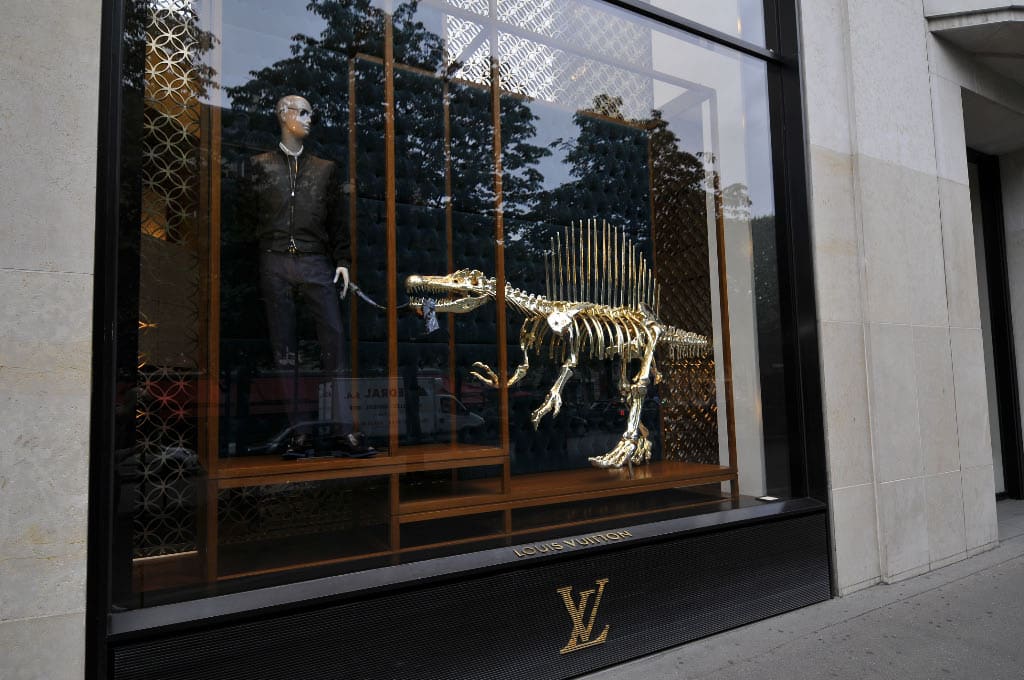 En 2013, Louis Vuitton inauguró un serie de escaparates que siguen siendo la quintaesencia del espíritu de marketing de Vuitton: espectacular, sin precedentes, y de lujo. La tienda flagship de los Campos Elíseos se convirtió en una muestra de dinosaurios dorados. Cada escaparate tenía al suyo propio, y algunos especímenes eran tan grandes que cubrían dos escaparates.