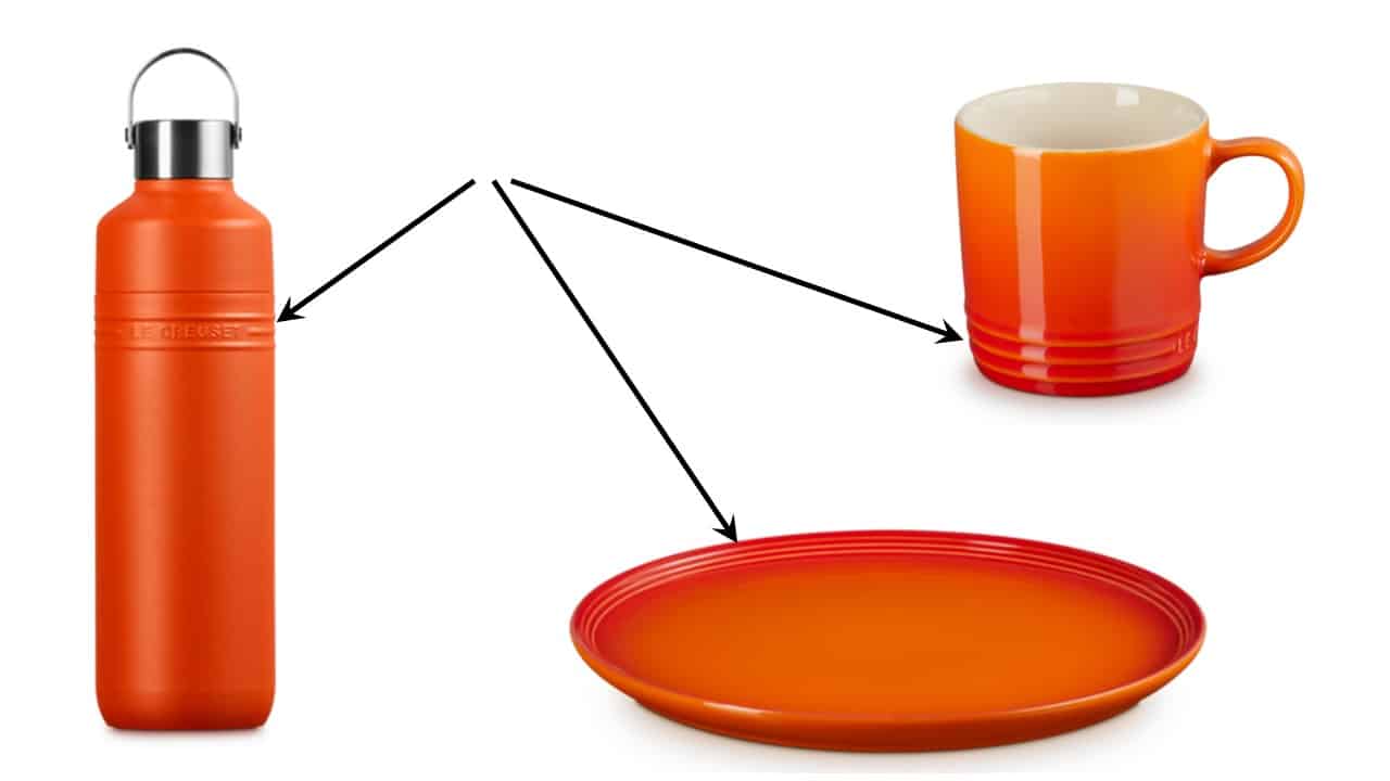 Los productos «derivativos» de la gama de Le Creuset presentan elementos visuales que se asocian con el ADN de la marca.