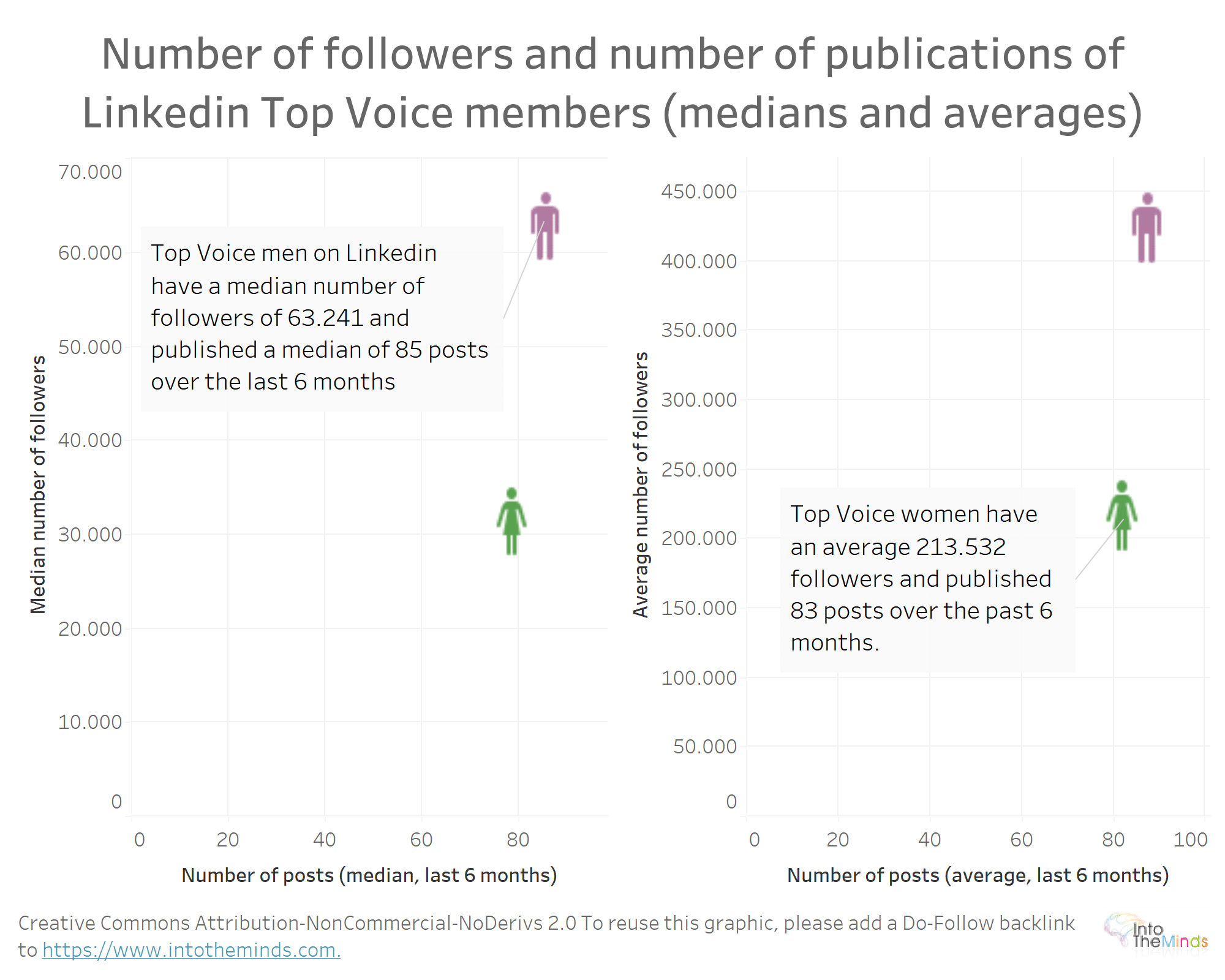 - -51%: de media, las mujeres Top Voice tienen 51% menos seguidores que los hombres