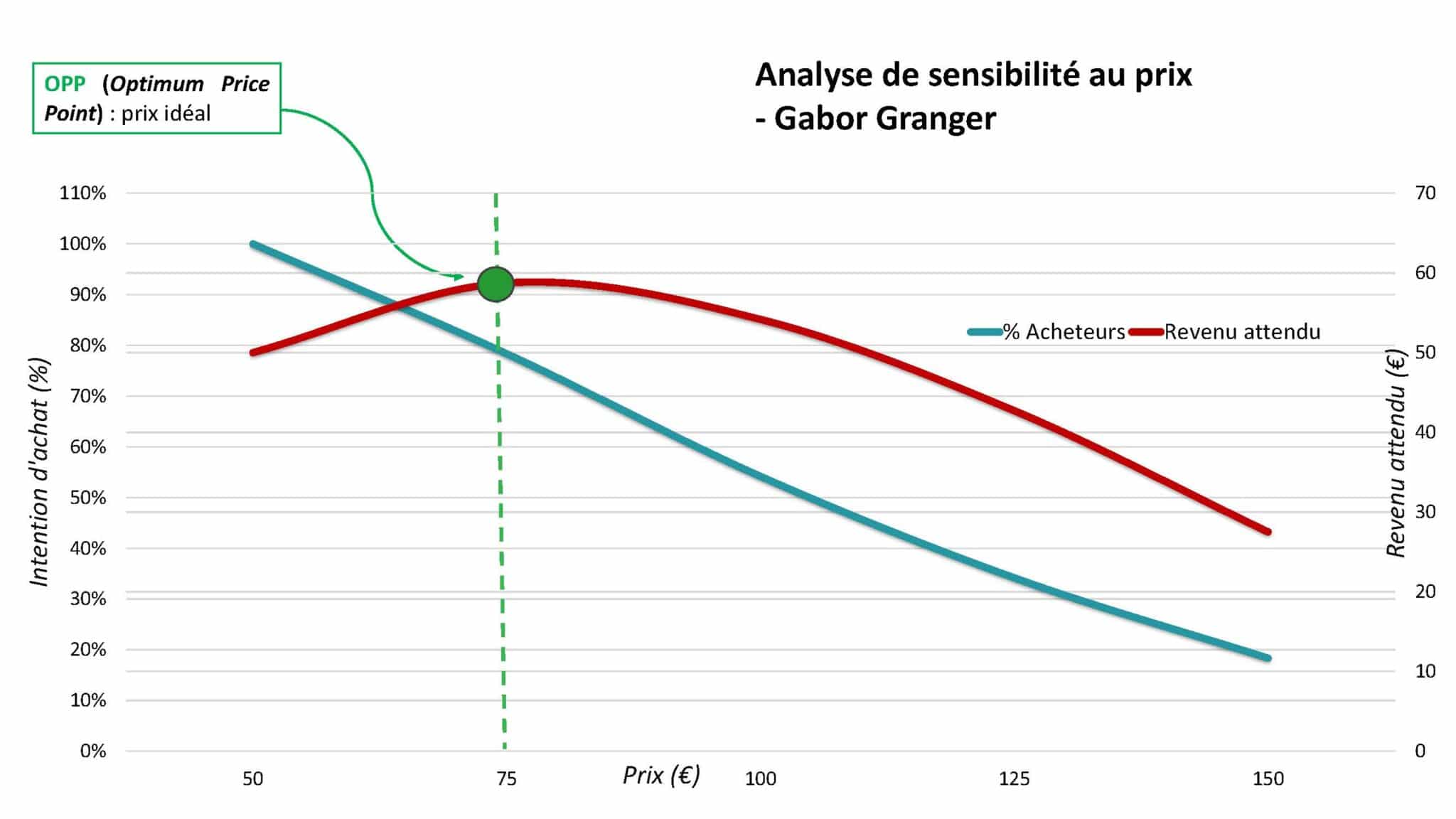 - Vous voulez maximiser vos revenus. Attention, maximiser les revenus n’est pas forcément maximiser les profits ! Gabor Granger vous indique le prix qui génère le chiffre d’affaires optimal, mais vous devrez intégrer vos coûts pour calculer la rentabilité.