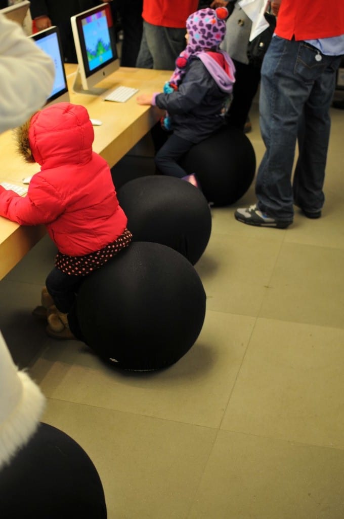 Il est maintenant tout à fait commun de voir le mobilier adapté à votre progéniture (souvenez-vous de mes billets sur Apple: voir photo ci-dessous prise au magasin Apple de la 5ème Avenue à New-York) mais c’est la première fois que je vois une porte d’entrée séparée.