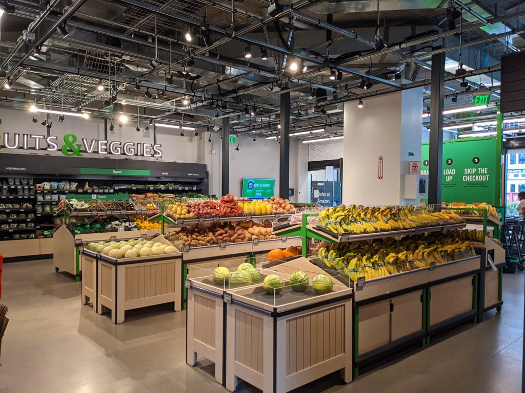 Il bello di questa tecnologia è che funziona anche con prodotti sfusi, come nel reparto frutta. Il negozio Amazon Fresh a Washington, D.C., ha una sezione di frutta e verdura che è molto più grande delle sue controparti.