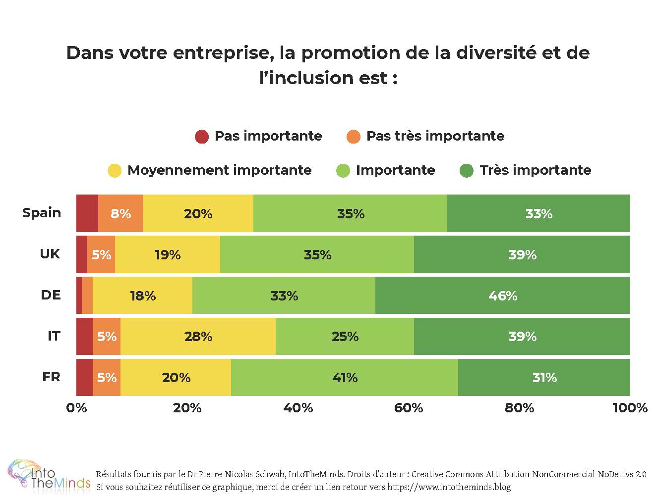 - le aziende tedesche sono le più impegnate in materia di diversità e inclusione, con il 79% di esse che dichiara che diversità e inclusione sono molto importanti (46%) o importanti (33%)
