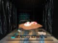 Il negozio Patrick Roger in Place Saint-Sulpice è curato in uno stile piuttosto “grezzo” (pavimento e scale in cemento). Grandi lastre di metallo sono attraversate da liane che sfuggono sorreggendo due vassoi di vetro, tra i quali vengono presentati gli incredibili cioccolatini di Patrick Roger. Il tavolo al centro è straordinario e le foto difficilmente gli rendono giustizia. Ho provato a fotografarlo dal basso per dare l’impressione di un “giardino straordinario”.