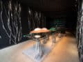 Patrick Roger è stato ispirato per questo punto vendita da un viaggio in Madagascar. Lamiere corrono lungo le pareti e una strana struttura sostiene il ripiano centrale in vetro. Ogni “piede” sembra composto da un frutto gigante intrappolato in un groviglio di viti. Quando osservi da vicino questa struttura, scopri i dettagli, comprese centinaia di piccole scimmie che emergono dal terreno. L’effetto sta prendendo piede.