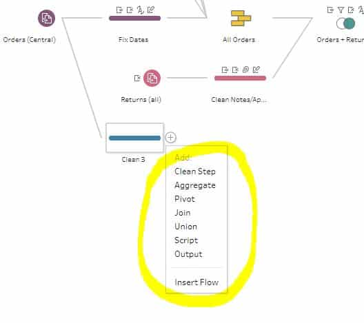 Le funzionalità disponibili in Tableau Prep sono piuttosto limitate ma coprono le esigenze più comuni.