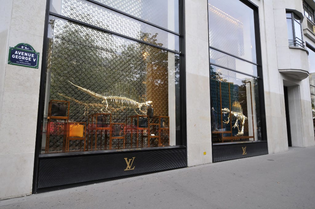 Nel 2013, Louis Vuitton ha inaugurato una serie di vetrine che rimangono la quintessenza dello spirito del marketing Vuitton: inedite, spettacolari e lussuose. Il flagship store degli Champs-Elysées è diventato una vetrina per dinosauri dorati. Ogni vetrina aveva la sua, e alcuni esemplari erano così grandi da occupare due finestre.