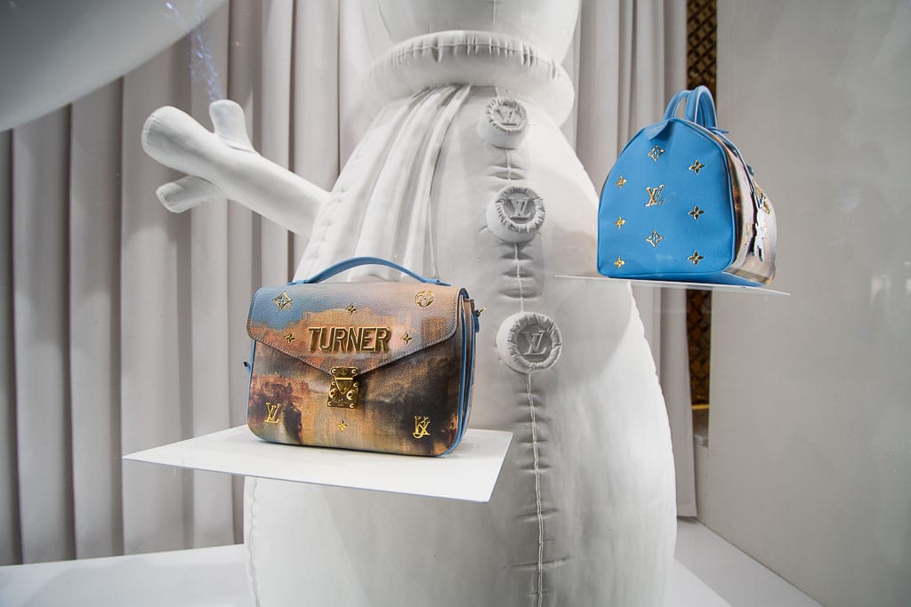- I palloncini ai due angoli della vetrina: si noti come le iniziali di Jeff Koons siano trattate alla stregua del logo Louis Vuitton