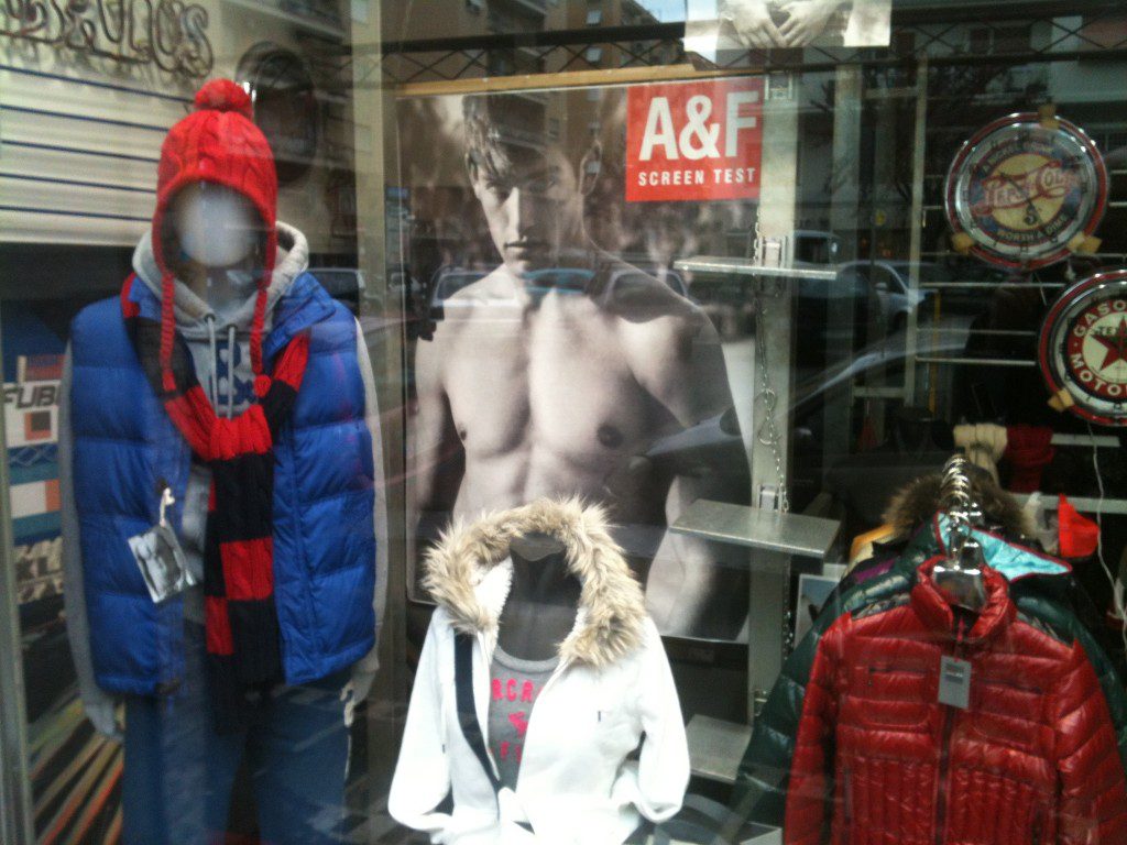 Cette rareté a des conséquences parfois curieuses, comme celle que j’ai pu observée à Rome où j’ai vu un magasin, proposant parmi d’autres marques quelques pièces griffées A&F. Comme vous pouvez l’imaginer il ne s’agissait nullement d’un revendeur autorisé mais d’un revendeur indépendant qui avait trouvé ainsi une manière originale de se différencier et d’améliorer l’ordinaire. Je suppose que le propriétaire ou quelques unes de ses connaissances avaient fait le voyage aux Etats-Unis et avaient ramené quelques vêtements à revendre.