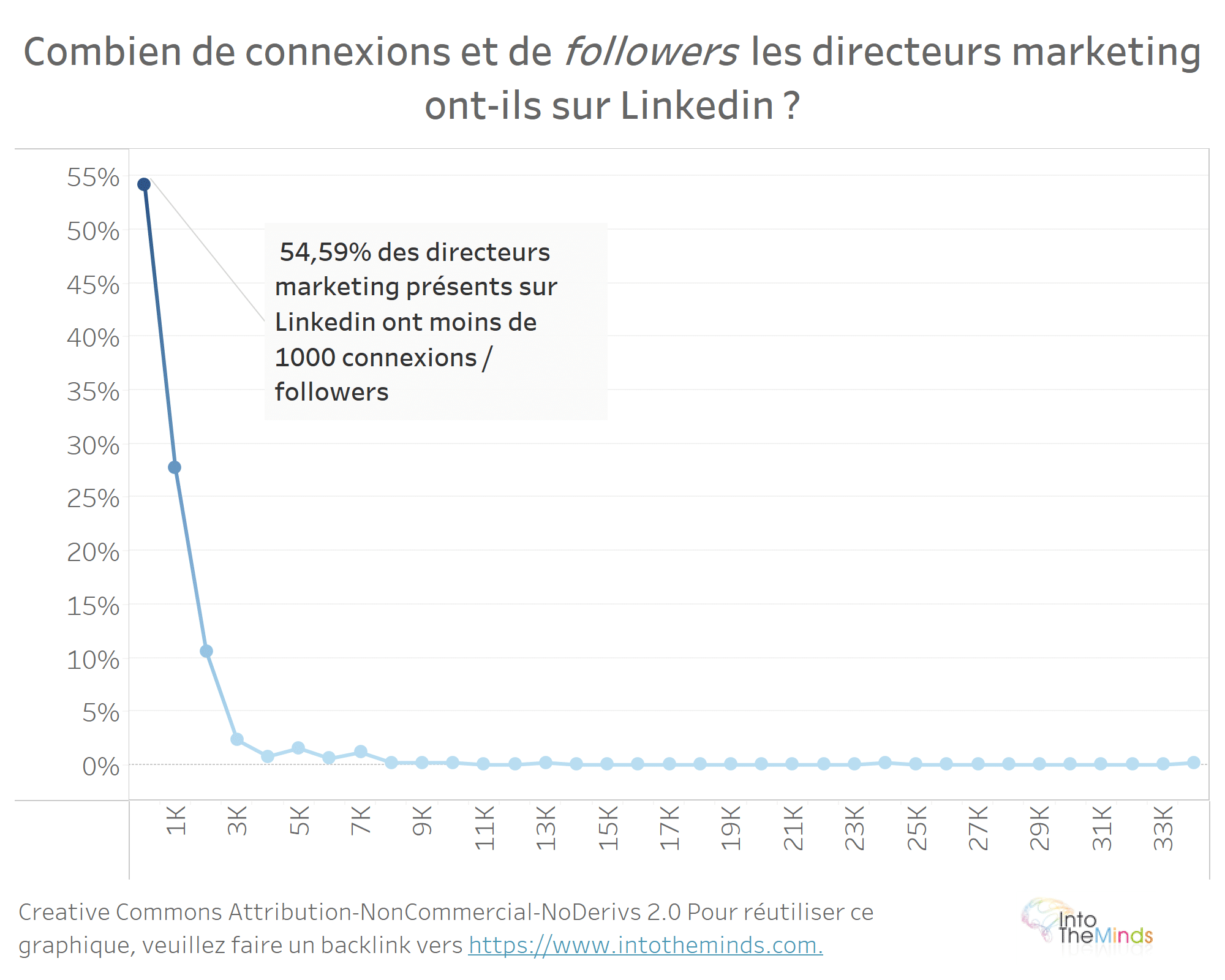 - 54,59% des directeurs marketing ont moins de 1000 connexions / followers