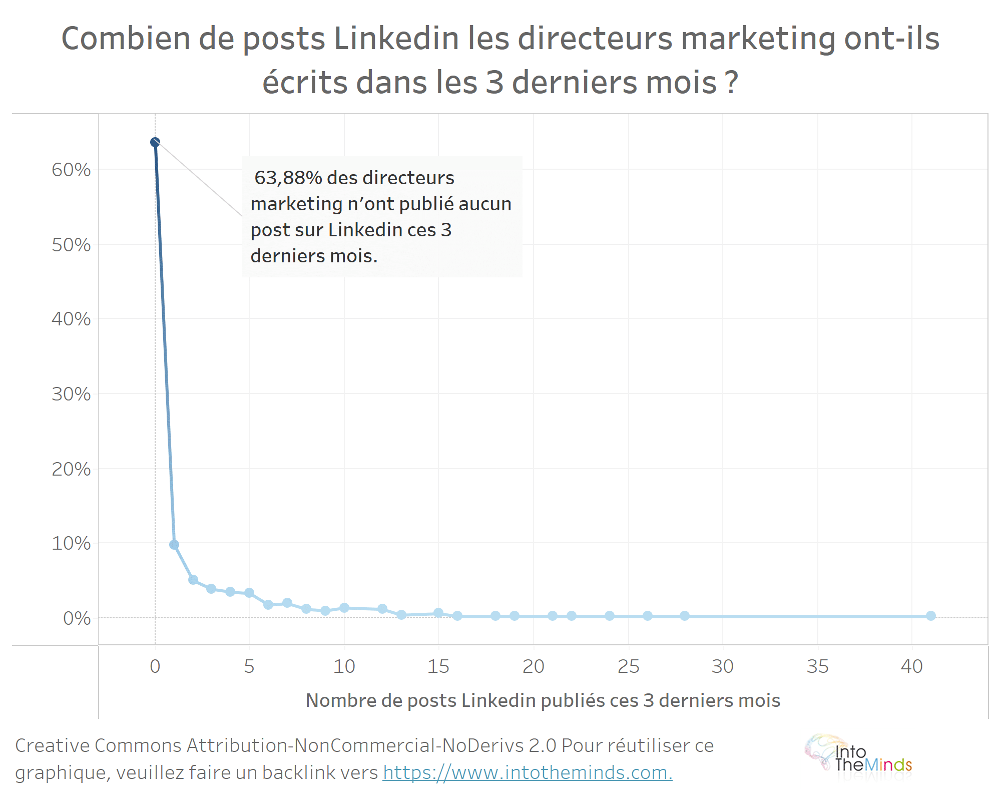 Je n’ai pas pu faire la distinction en fonction du contenu du post, mais il est probable que 80 à 90% des directeurs marketing n’ai pas rédigé de post Linkedin dans les 3 derniers mois.