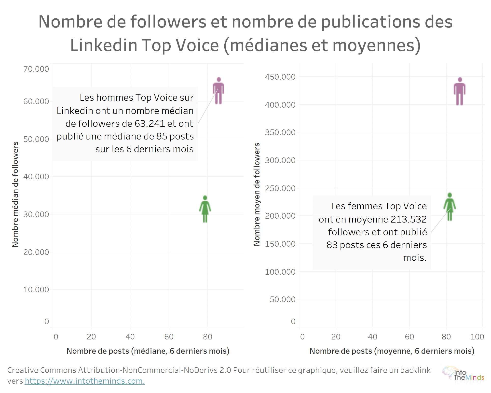 - -51% : en moyenne les femmes Top Voice ont 51% de followers de moins que les hommes