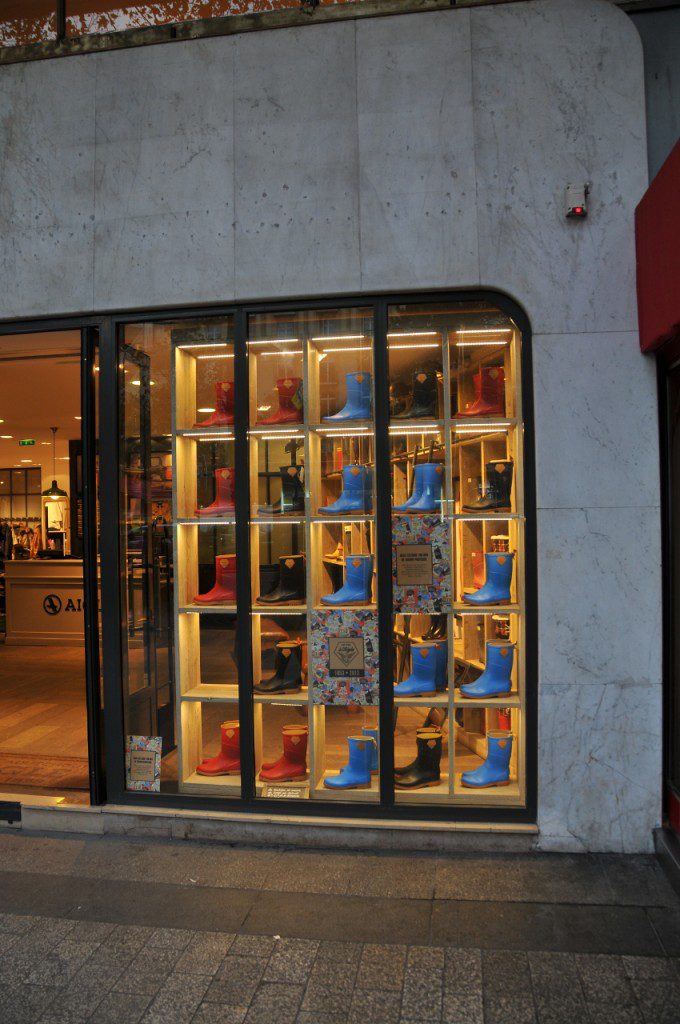 Aigle maakt haar beroemde rubberlaarzen al sinds 1967 in Châtellerault (Frankrijk) en begon haar diversificatiestrategie in 1989. De groep kende moeilijke momenten en werd in 2004 overgenomen. Het herdopen van de visuele identiteit en de «renaissance» van het merk leidden tot de voltooiing van het werk in 2006 en tot, onder meer, de opening van winkels (zoals die aan de Champs Élysées in Parijs), vooral in Azië waar tegenwoordig 43% van de inkomsten worden gemaakt. Zoals we zullen zien is deze diversificatie zeer coherent met de impliciete positionering van het oorspronkelijke product, de rubberlaarzen. Voor haar 160ste verjaardag (het merk ontstond in 1853 onder de naam “La Compagnie du Caoutchouc souple”), werd de visuele identiteit van de winkels opgefrist, waarbij het accent sterk werd gelegd op de traditionele kant van het merk: de gebruikte materialen, methodes, en vooral de term “meester rubbermaker” die een beetje een bijkomend cachet en een gepercipieerde waarde moeten toevoegen. De laarzen worden inderdaad van natuurrubber gemaakt (en niet synthetisch zoals sommige lagekwaliteitsmerken) wat een van de pijlers van de marketingstrategie is.