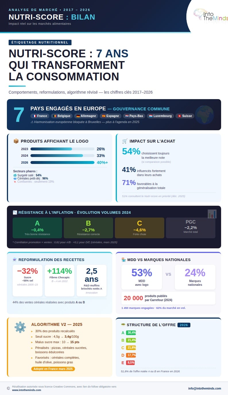 - 62% : part de marché alimentaire en volume sous Nutri-score en France en 2024-2025