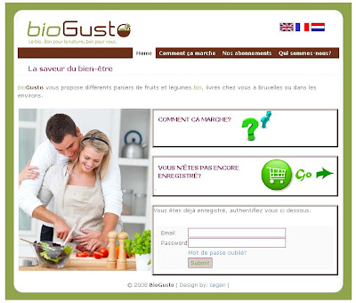 L’erreur majeure de BioGusto est d’obliger le client à s’enregistrer avant de passer une commande. Dans ces conditions BioGusto se prive d’une grande partie de sa clientèle potentielle et c’est un autre problème majeur.BioGusto a part contre eu l’excellente idée de faciliter l’utilisation de ses services à ses clients déjà enregistrés en leur donnant la possibilité de s’identifier dès la page d’entrée.