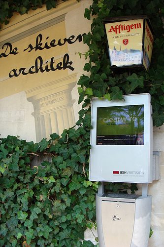Dans mon billet de lundi j’expliquais les mutations que la pub avait connues pour devenir à ce point omniprésente. On est passé d’une stratégie unique, uniforme (les Américains diraient « one-size-fits-all ») dans laquelle un panneau publicitaire avec un message unique était imposé au plus grand nombre, à une segmentation plus fine imposant des messages adaptés aux différents types de besoins. Pour suivre cette tendance les messages publicitaires ont envahi une multitude de lieux desquels ils étaient traditionnellement absents, renforcant ainsi leur caractère intrusif. Je vous propose deux exemples pour illustrer cette tendance.