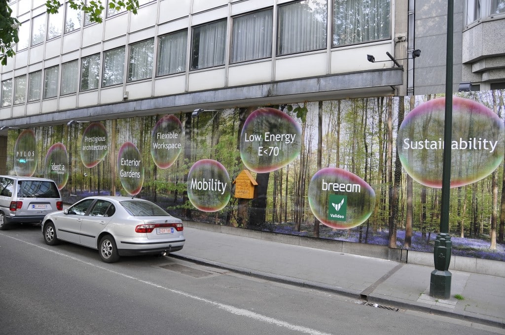 Voici une innovation marketing originale repérée à Bruxelles cette semaine. Pour attirer l’attention des passants sur le caractère « vert » du bâtiment et de l’activité qui va tourner autour, une innovation intéressante a été mise en place par les concepteurs du projet, Pylos et Fidentia