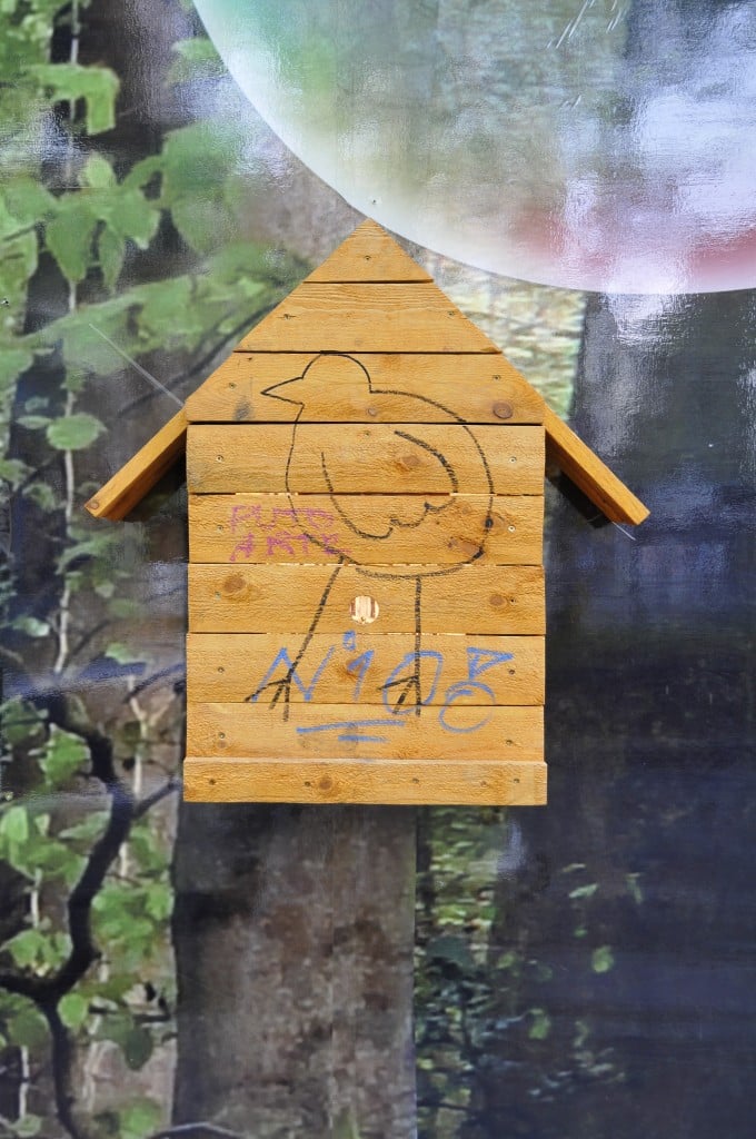 Mettez votre œil dans la maison à oiseaux et découvrez le bâtiment dans son ensemble en prenant du recul.
