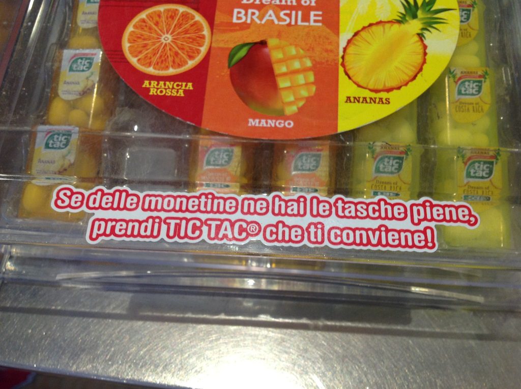La stratégie utilisée par Tic Tac est plutôt bien pensée. Elle est basée d’une part sur un prix d’appel très bas (qui réfléchirait avant de dépenser 0,30 €) et sur une spécificité propre à l’Italie, à savoir la prévalence des transactions en cash.