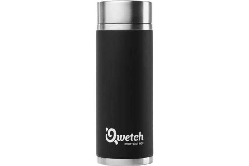 Qwetch est une start-up française créée par Stéphane Miquel. Stéphane a eu l’idée de développer un récipient isotherme pour boire du thé (sans doute parce qu’il aime ça). Le principal avantage de son innovation est que le récipient à une double fonction : on y fait le thé directement avant de le transporter avec soi. Cela change donc des solutions classiques de contenants n’ayant que pour seule fonction de maintenir un liquide au chaud. Ici un filtre vous est fourni qui permet de faire directement infuser le thé. Une grille est également livrée qui permet de boire du thé à la chinoise c’est-à-dire en rajoutant constamment de l’eau sur les feuilles, ce qui permet de consommer un thé de moins en moins fort en théine au fur et à mesure de la journée. La grille en inox retient les feuilles adéquatement.